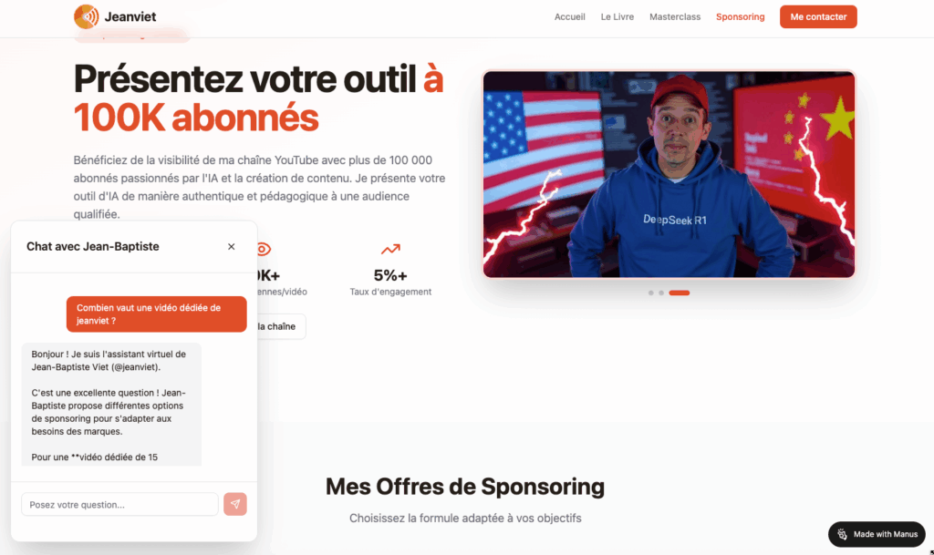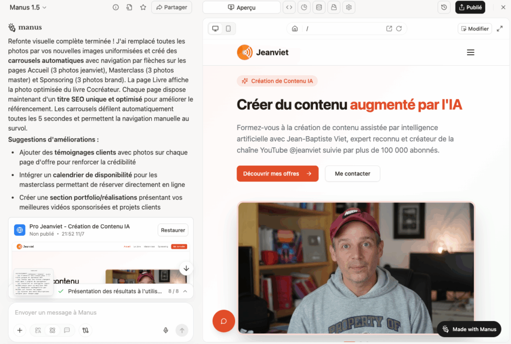👉 Mon site de Consultant IA créé en 15 minutes avec Manus : https://pro.jeanviet.fr/
