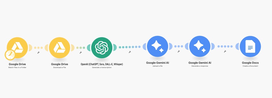 Pour que ce processus ne te prenne pas des heures, on va utiliser l’outil d’automatisation Make. Il permet de connecter différentes applications (Google Drive, OpenAI, Gemini) entre elles sans savoir coder.